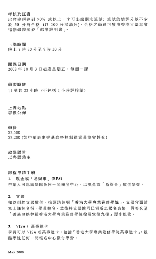 查詢電話:2975-5683譚小姐(香港大學專業進修學院)或本會9039-6679(Peter Leung)
